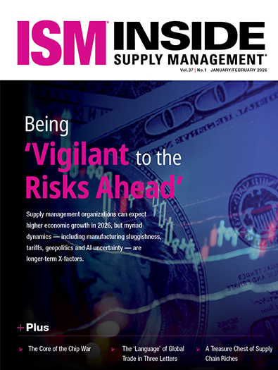 Inside Supply Management® is a leading publication for those within the procurement/sourcing and supply chain profession. Our magazine covers essential news, innovative trends, ISM® PMI® Reports coverage, research analysis, leadership profiles, career strategies and much more.